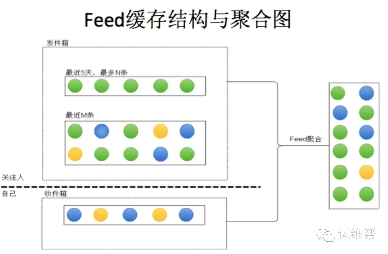你看到的微博是由哪些部分聚合而成的呢?最右边的是Feed,就是微博所有关注的人,他们的微博所组成的。 微博我们会按照时间顺序把所有关注人的顺序做一个排序。 随着业务的发展,除了跟时间序相关的微博还有非时间序的微博,就是会有广告的要求,增加一些广告,还有粉丝 头条,就是拿钱买的,热门微博,都会插在其中。分发控制,就是说和一些推荐相关的,我推荐一些相关的好友的微博,我推荐一些你可能没有读过的微博,我推荐一些其他类型的微博。 当然对非时序的微博和分发控制微博,实 际会起多个并行的程序来读取,最后同步做统一的聚合。