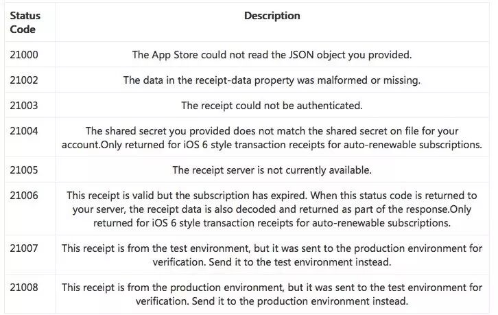 二次验证,请注意区分宏, 测试用沙盒验证,App Store审核的时候也使用的是沙盒购买,所以验证购买凭证的时候需要判断返回Status Code决定是否去沙盒进行二次验证,为了线上用户的使用,验证的顺序肯定是先验证正式环境,此时若返回值为21007,就需要去沙盒二次验证,因为此购买的是在沙盒进行的。
