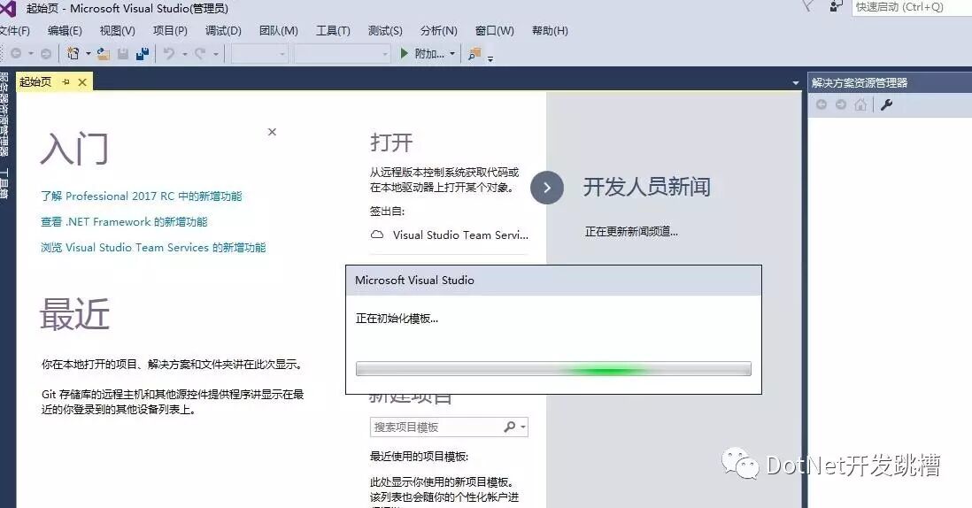 至此 Visual Studio 2017 RC安装完成,启动界面跟vs2015差不多,风格也是有三种,后续再聊聊项目的新特性。