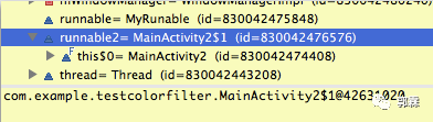 可以看到,runnable1 是没有什么特别的。但 runnable2 多出了一个 MainActivity 的引用,若是这个引用再传入到一个异步线程,此线程在和Activity生命周期不一致的时候,也就造成了Activity的泄露。