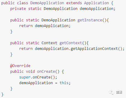 当然,你也可以直接连 Context 都不用传入了。重写 application,提供静态的 getContext 方法: