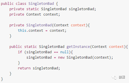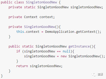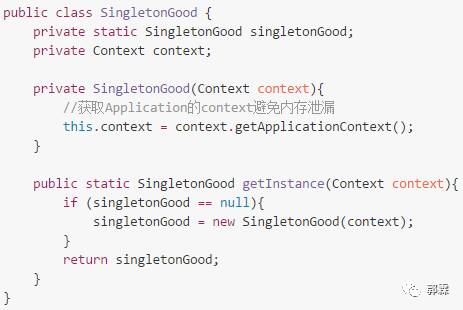 这个错误在生活中再普遍不过,很正常的一个单例模式,可就由于传入的是一个 Context,而这个 Context 的生命周期的长短就尤为重要了。如果我们传入的是 Activity 的 Context,当这个 Context 所对应的 Activity 退出的时候,由于该 Context 的引用被单例对象所持有,其生命周期等于整个应用程序的生命周期,所以当前 Activity 退出时它的内存并不会回收,这造成的内存泄漏就可想而知了。