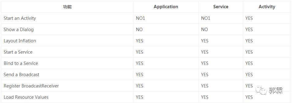其中: NO1 表示 Application 和 Service 可以启动一个 Activity,不过需要创建一个新的 task 任务队列。而对于 Dialog 而言,只有在 Activity 中才能创建。
