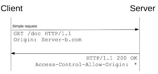 对于简单请求来说,服务器和客户端之间的通信只是进行简单的交换。如图:
