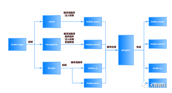 虽然wepy提升了小程序开发体验,但毕竟最终要运行在小程序环境中,归根结底wepy还是需要编译成小程序 需要的格式,因此wepy的核心在于代码解析与编译。
