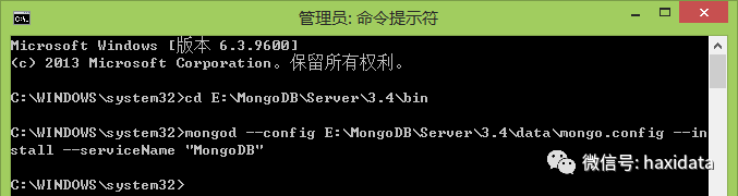 继续输入:mongod --config D:\data\mongo.config --install --serviceName "MongoDB"
