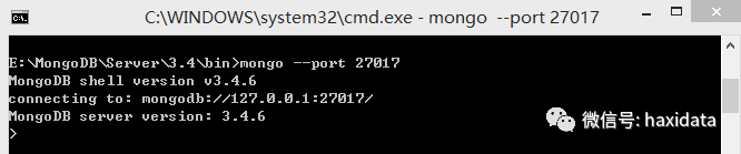 2.在mongod.exe文件位置打开命令窗口中运行如下命令: