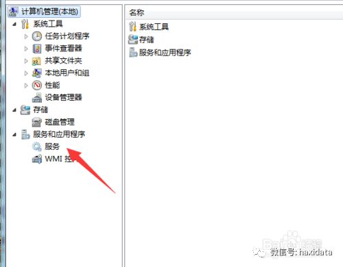 进入管理界面,点击打开【服务和应用程序】,可以看到【服务选项】点击打开即可