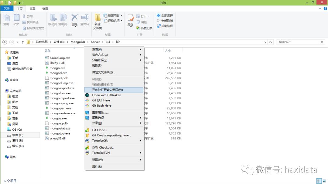 首先在mongod.exe文件位置打开命令窗口中运行如下命令: