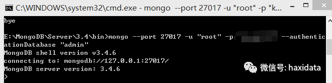 mongo --port 27017 -u "root" -p "密码" --authenticationDatabase "admin"