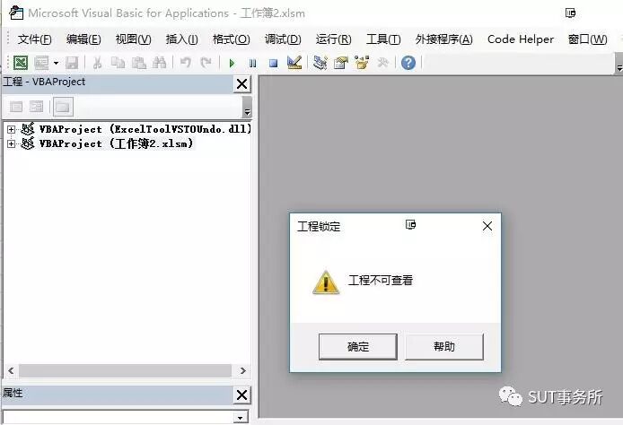完成后,当你打开“vbaproject”工程属性时,就将会提示∶“工程不可看"