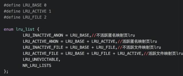其实内核回收内存就是根据文件映射和匿名映射来进行的,在 mmzone.h 有如下定义:
