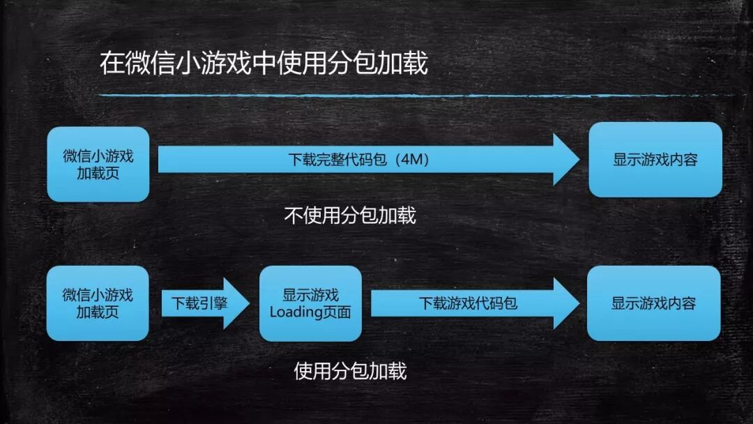 微信小游戏之所以提供了分包的策略,最主要的目标是希望开发者将包体积尽可能降低,将首屏加载的压力分散到游戏逻辑中,保证尽快给玩家一个可以交互的界面,而不是停留在微信小游戏的启动页中。