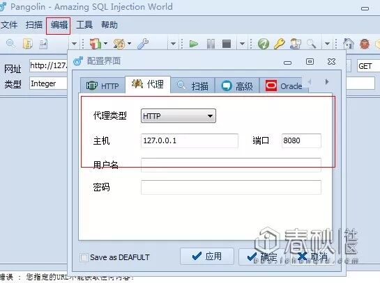 1、Pangolin:我们先用注入神器pangolin试试,为什么要用pangolin?因为它可以设置代理,要知道不是谁都可以设置代理的。