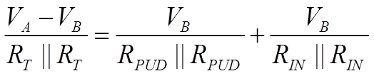 当两个模块都处于接收状态时,可以根据基尔霍夫电流定律对节点A和节点B列出下列公式: