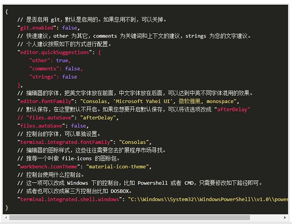 这样就会打开配置的json文件,您可以在这里按照您的个人喜好进行更改。当然这需要一定的基础。如果您想要快速获得一个适合的开发环境,笔者在这里有正在使用的配置文件,可供参考: