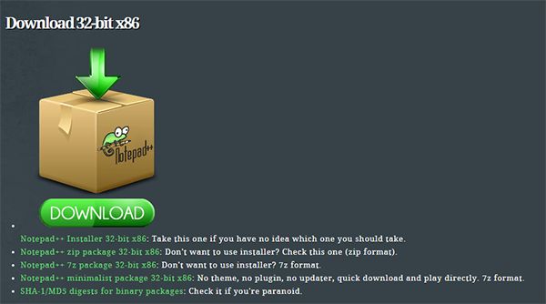 下载Notepad++,直接访问网址后点击那个大大的Download即可(但是这个无论任何机型都会下载32-bit版本,如果需要64-bit 版本可以在下方寻找。)。