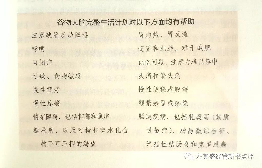 1:有些人以为这只是另一本有关饮食与生活方式的书,会在有限的时间里检验你的意志力和决心。我很高兴地告诉你,如果你这么想,那就错了。"谷物大脑完整生活计划。是要帮助你启动一套能无限期坚持下去的健康生活方式。P序言5