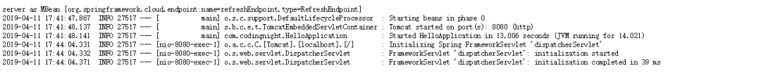 如图所示,我们可以可以观察到springboot程序已经是running状态了,pid是27517,我们可以点击Tail -f来观察输出日志,它的作用跟我们在服务器直接“tail -f”是类似的。