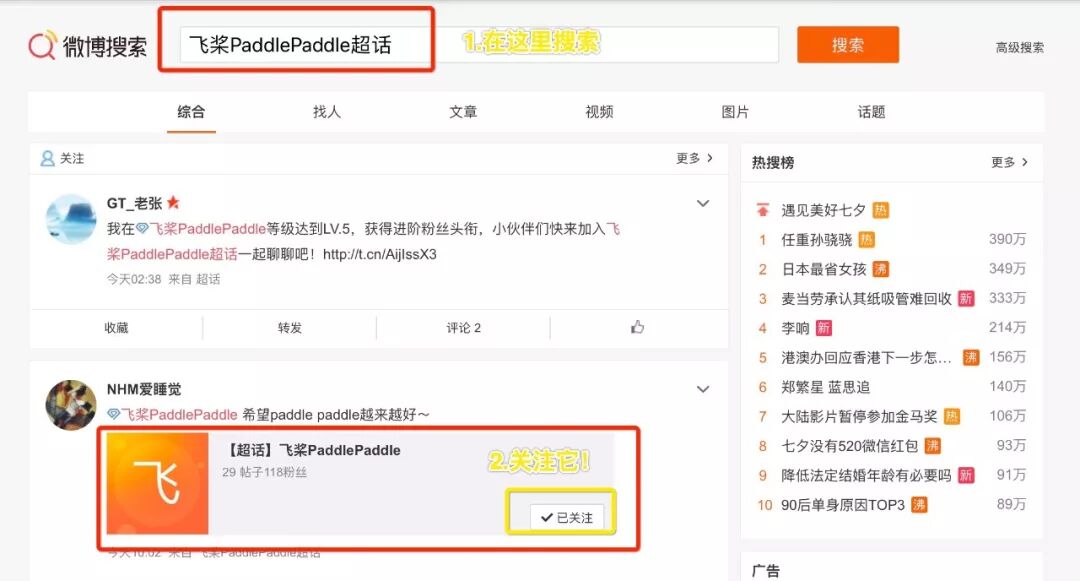 在微博超话「飞桨PaddlePaddle」坚持打卡两天,在其中一条发布PaddlePaddle小案例,超过100字就可以参与机械键盘抽奖活动!