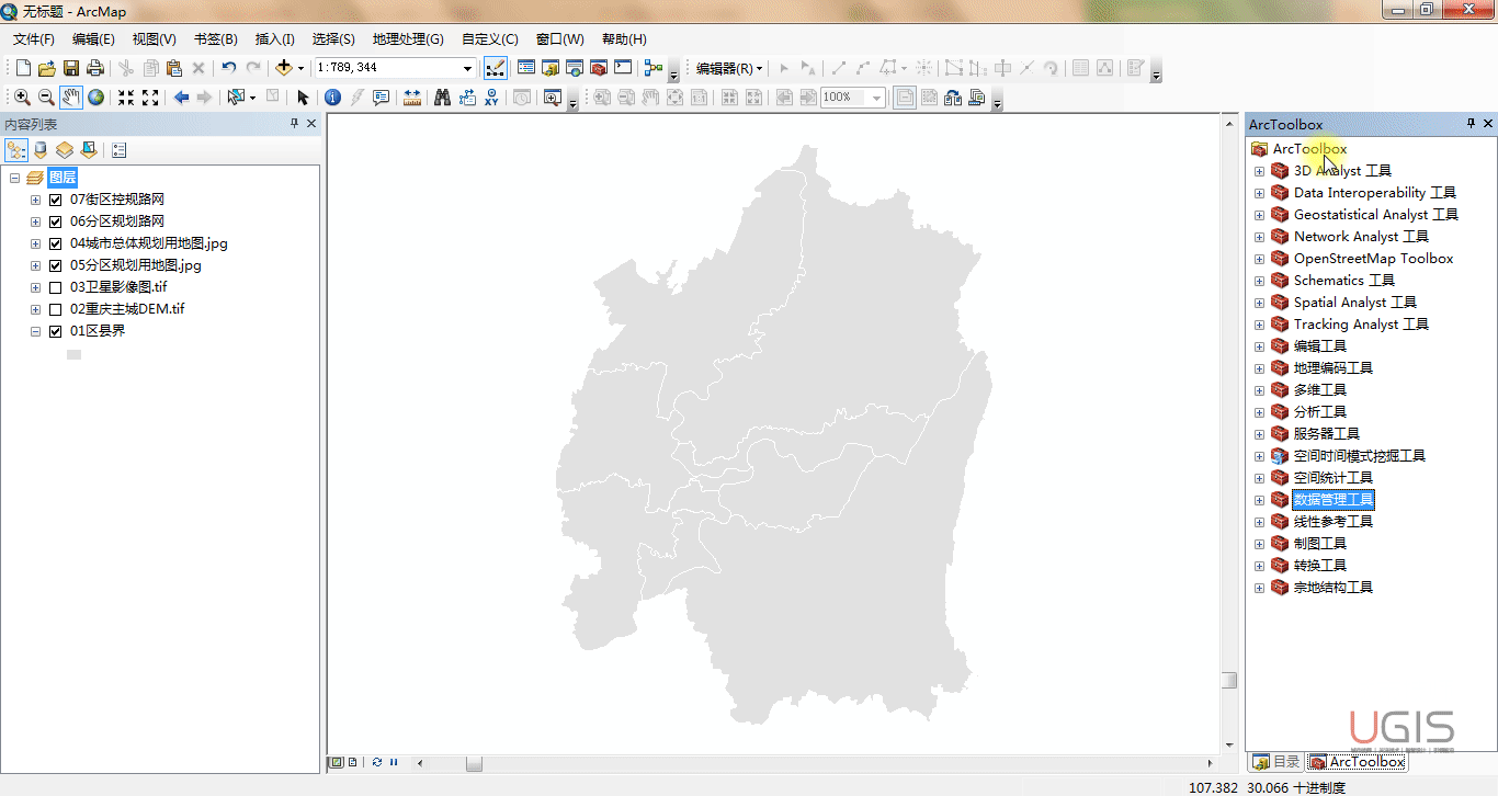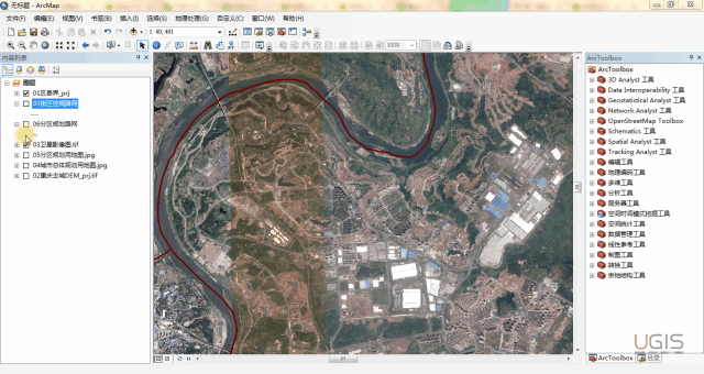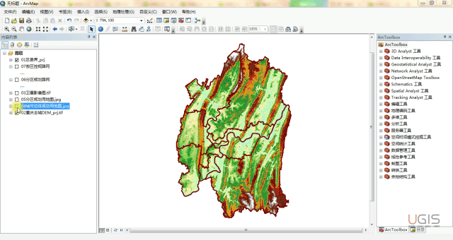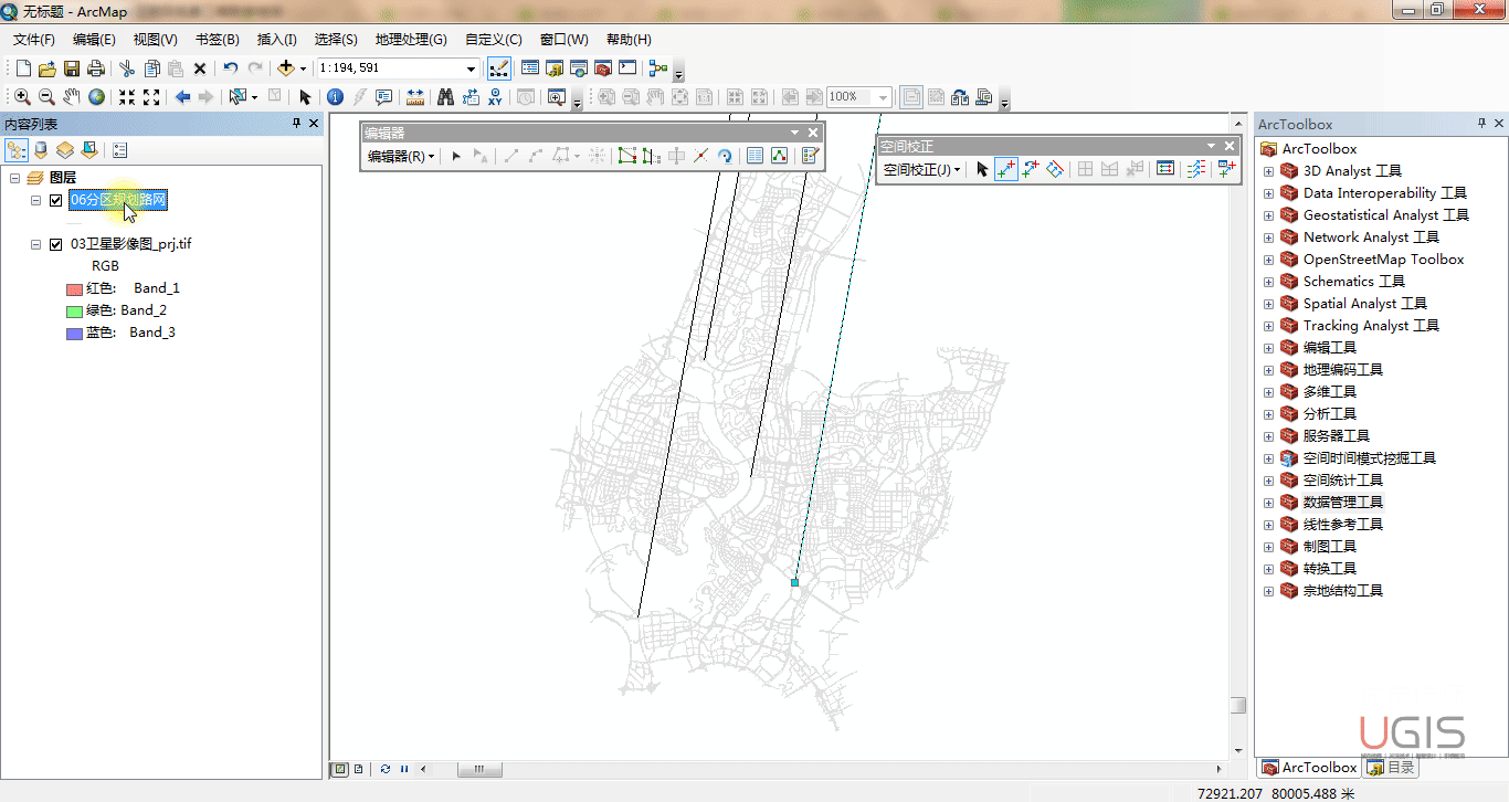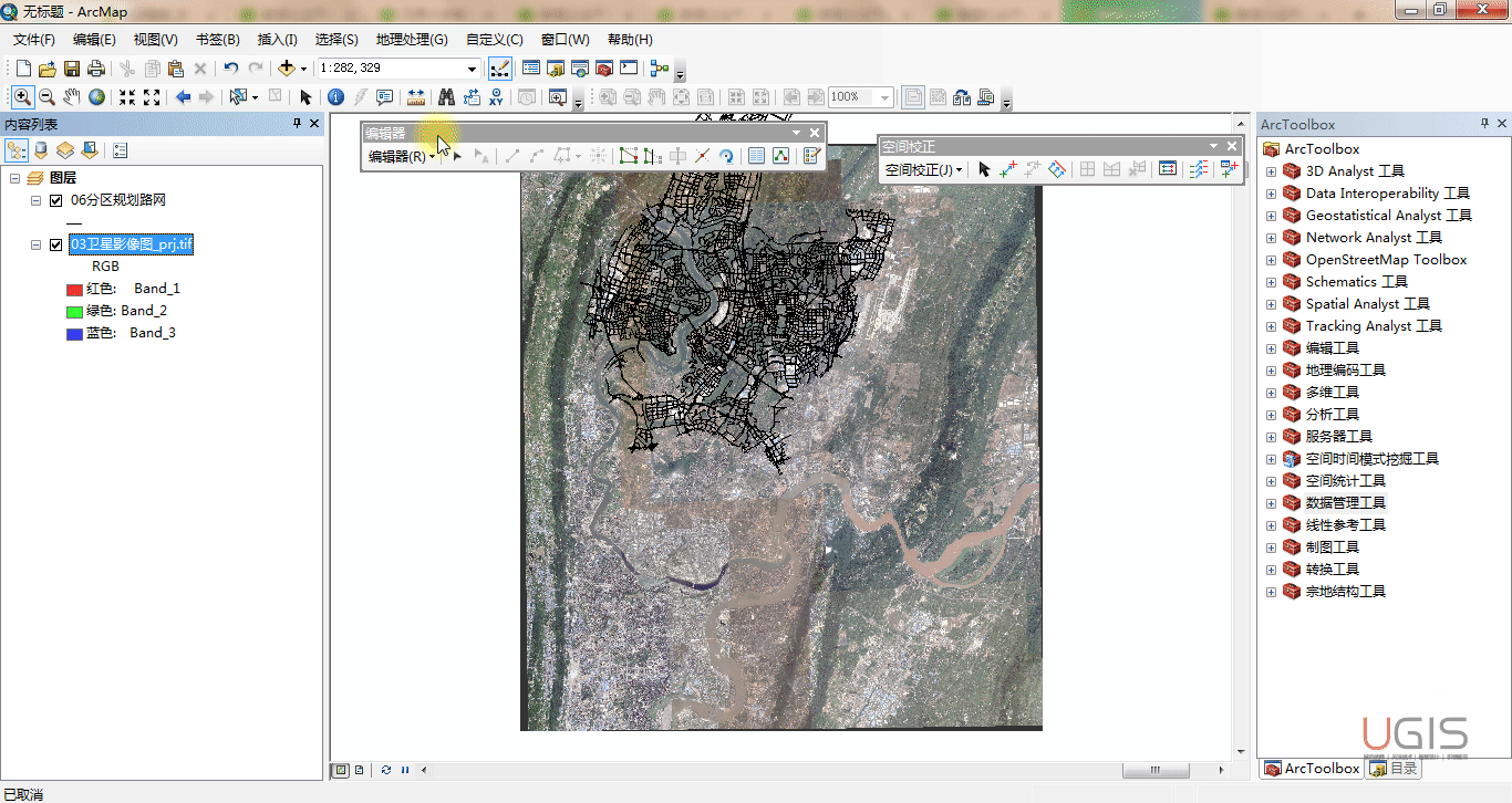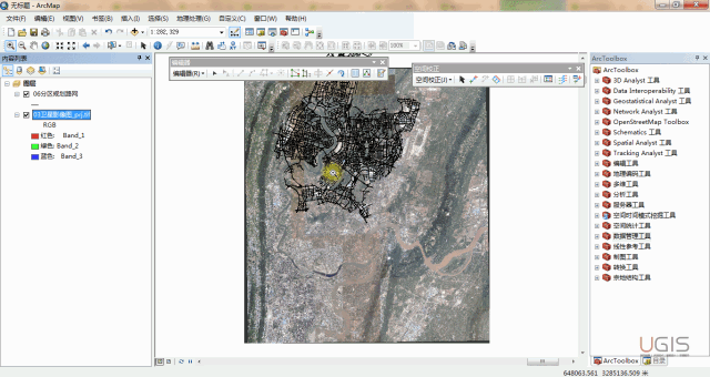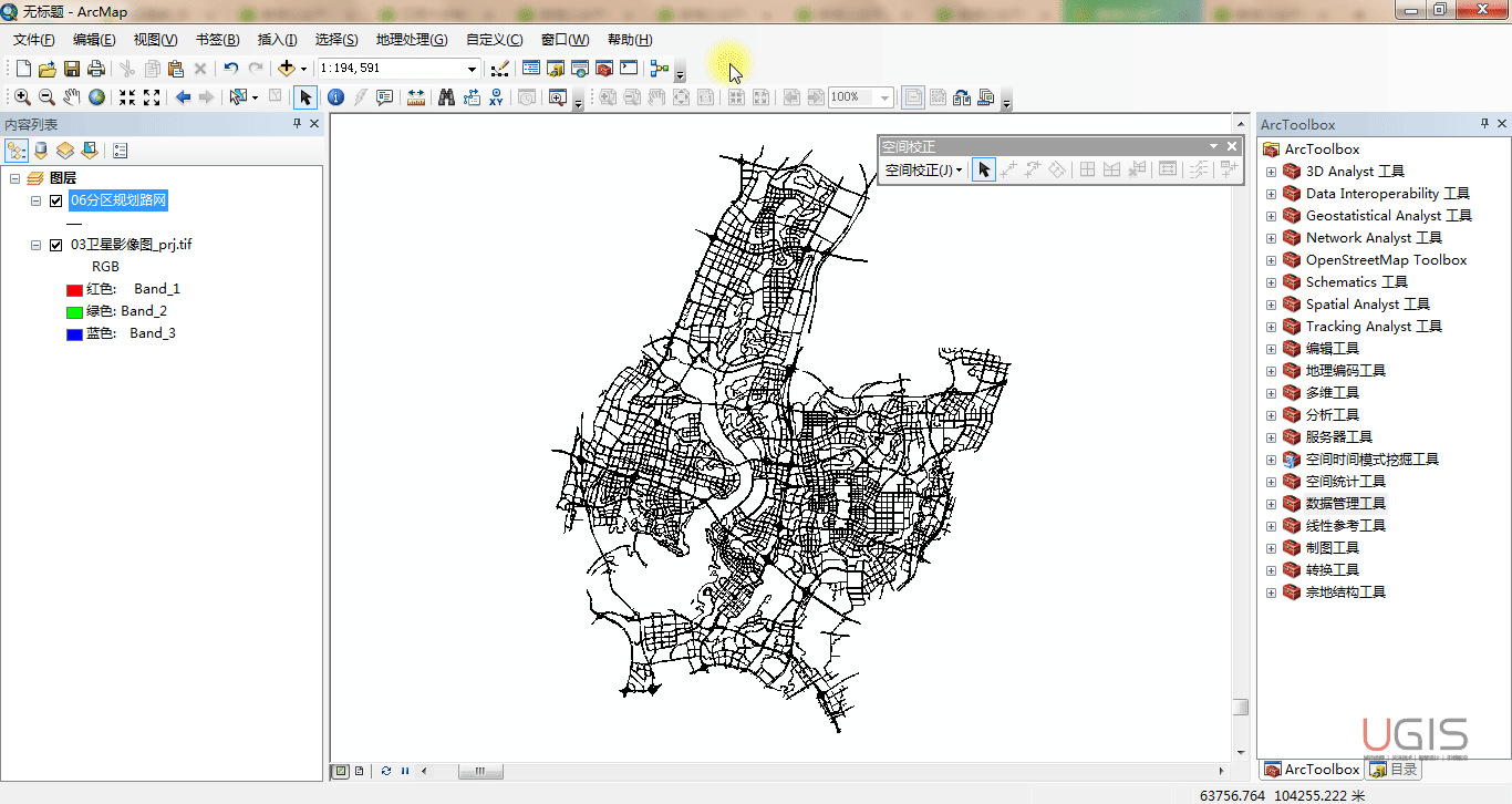 我们采用相同的方法完成其他矢量数据的“空间校正”及栅格数据的“地理配准”。