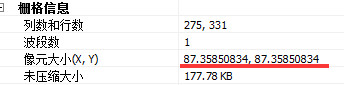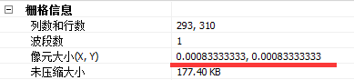 ↑↑↑ 图B 投影之后投影坐标系下的数据像元大小