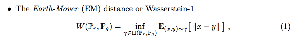 Wasserstein 距离又叫 Earth-Mover(EM)距离,论文中定义如下: