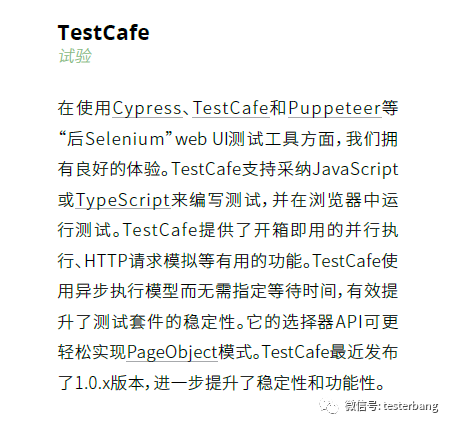 而TestCafe还在试验中