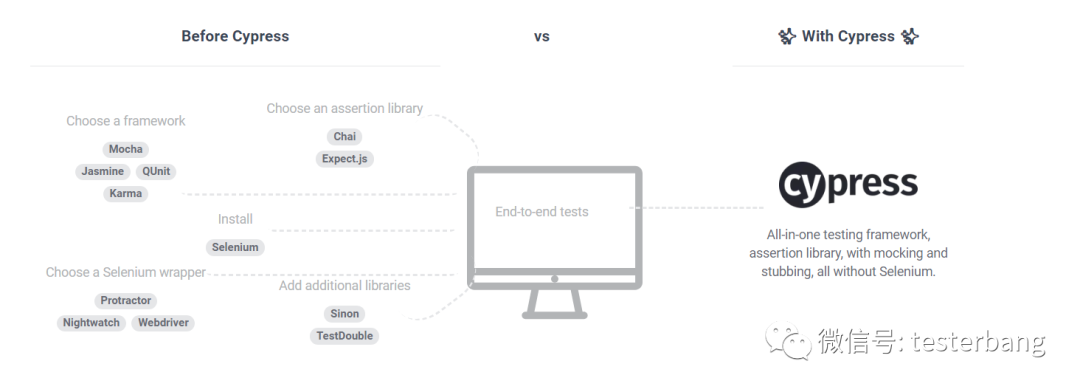 cypress是一个一体化测试框架 mock ,断言 ,打桩都有了唯独没有selenium