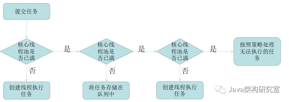 根据上面的参数介绍,简单了解一下线程池的实现原理,以提交一个新任务为开始点,分析线程池的主要处理流程