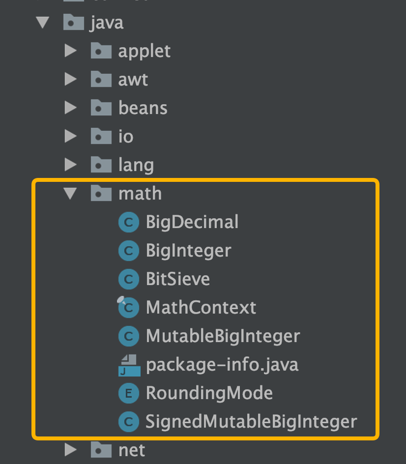 在前文《不瞒你说,我最近跟Java源码杠上了》中说过,Java的大数类位于java.math包下: