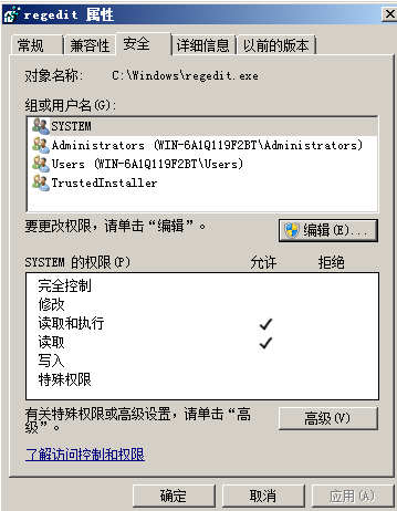 利用文件管理器对 regedit文件设置成只允许管理员能 使用命令访问修改注册表,其他用户只能读取,但不能修改,这样就可以防止非法用户恶意修改注册表。