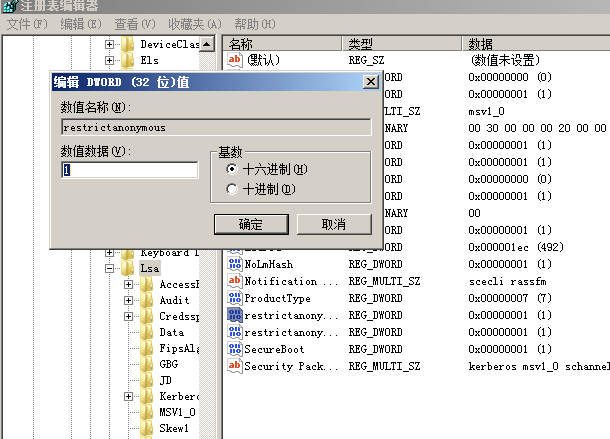 目的:禁止使用匿名用户空连接枚举系统敏感信息