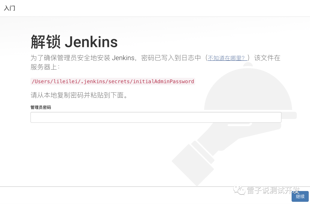 输入网址,http://localhost:8080/jenkins,可以看到下面的页面。