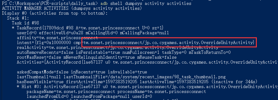 adb shell am start -W -n tw.sonet.princessconnect/jp.co.cygames.activity.OverrideUnityActivity