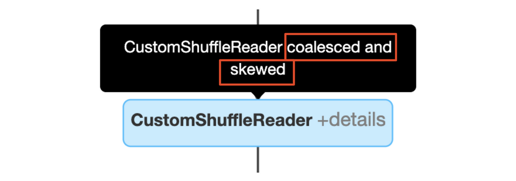 当CustomShuffleReader的标志为"skewed"时,这意味着AQE在排序合并连接操作之前检测到一个或多个分区中的数据倾斜。此节点的详细信息显示了倾斜分区的数量以及从倾斜分区拆分的新分区的总数。