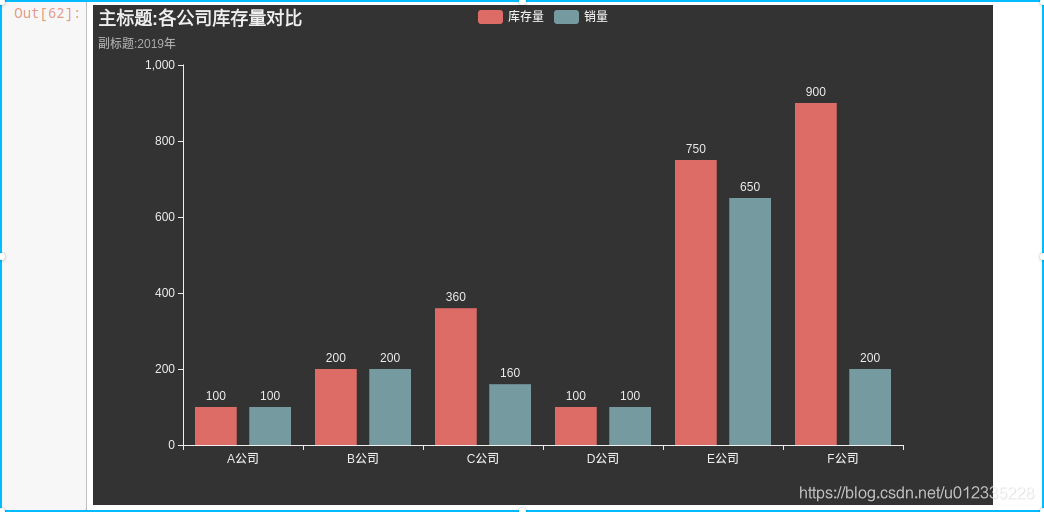 .set_global_opts(title_opts=opts.TitleOpts(title='主标题:各公司库存量对比',subtitle='副标题:2019年'))