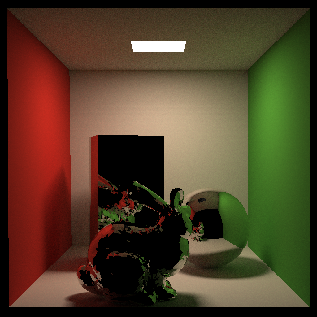 提供一个单独的采样方法是非常必要的,而不是使用默认的方法,因为默认的方法通常用于像漫反射一样的表面,而对于像镜面一样的带有mirror的brdf,效率非常低。下面的图片是由默认采样方法生成的。
