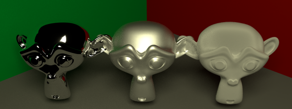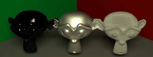 被选为NDF,三只猴子的粗糙度值不同(0.0,0.5,1.0)。从图中我们可以看到,最左边的猴子得到的结果比默认的采样方法好得多。对于其他两只猴子,我们用余弦-pdf取样方法得到了类似的结果。
