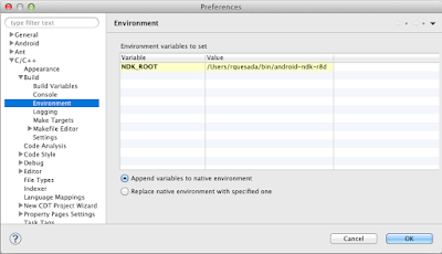 * Click **Add** button and add a new variable `NDK_ROOT` pointing to the root NDK directory.