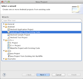 1. File->New->Project->Android Project From Existing Code