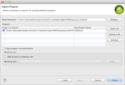 2. **Browse** to your project directory. eg: `cocos2d-x/cocos2dx/samples/Cpp/TestCpp/proj.android/`