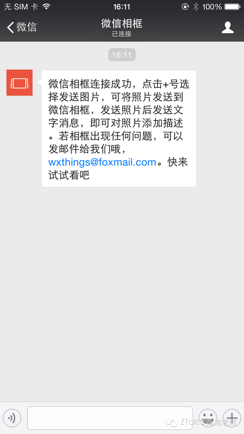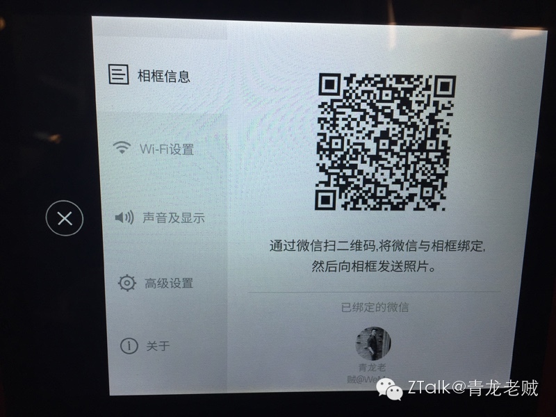 綁定后進入該公眾號會收到提示,可以通過發送照片和描述給該公眾號上傳到你綁定的微信相框里。