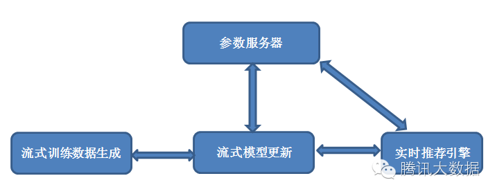 從某種意義上來說,本文是筆者前文[1]的后繼。在前文中,我們已經分析了類似效果廣告點擊率預估這種場景下的模型快速更新的需求,給出了在當時看來比較穩妥的一套技術方案。這套方案本質上仍然是離線訓練,其中訓練數據是流式生成的,以分鍾級延遲落地HDFS上;模型訓練的算法跑在Spark上,利用Spark的內存計算能力使離線模型訓練的速度提升一個數量級;待模型訓練結束后,立即將得到的模型推送到實時推薦引擎上,完成模型的部署。