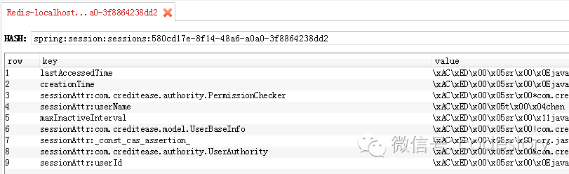 用戶登錄后查看redis中的數據,可以看到這些Session信息。