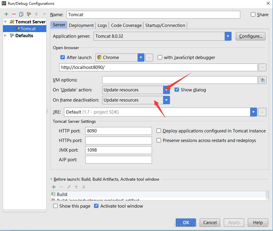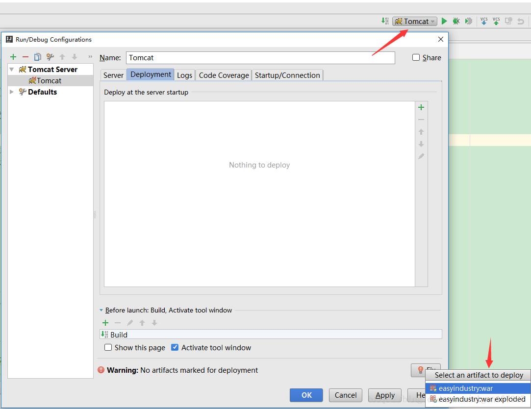 在使用IDEA開發項目的時候,部署Tomcat的時候通常會出現下邊的情況: