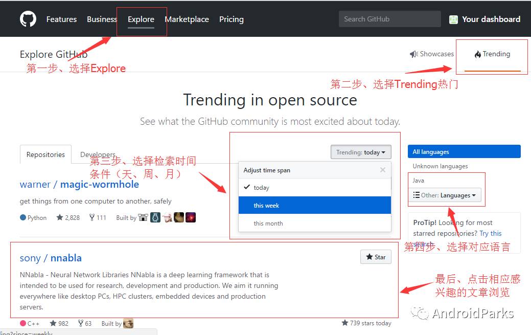 利用github的Explore功能,發現當下熱門的開源項目