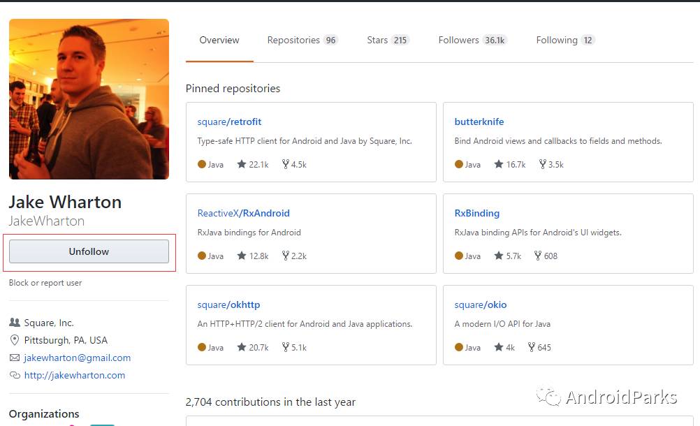 首先,和微博、朋友圈、空間一樣,你要想在你的朋友圈看到別人的動態,首先你的加人家好友對吧。所以首先我們得關注一些行業的大牛,例如關注Jake Wharton