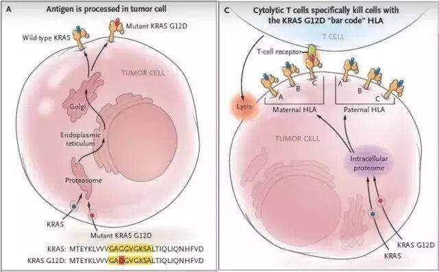 圖8. KRAS G12D突變產生新抗原及被T細胞消滅的過程